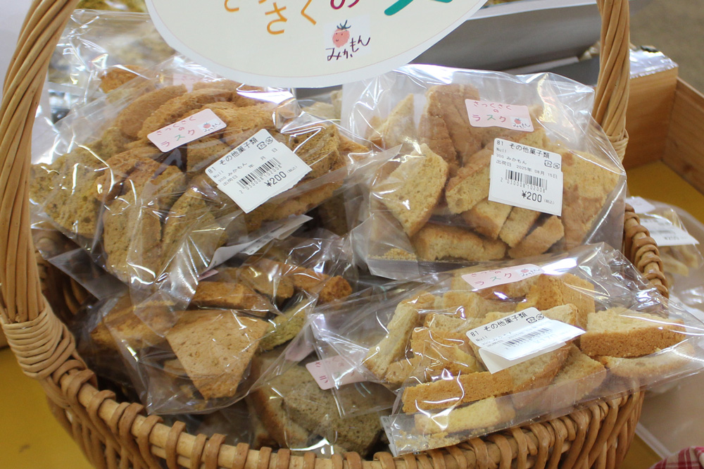 近隣の生産者が育てた、新鮮な野菜・果物、加工食品、手作りの寿司などが人気の産直です。そして手づくり菓子工房「みかもん」で焼き上げたロールケーキやプリン、パンは、県外からもお求めに来ていただいております。